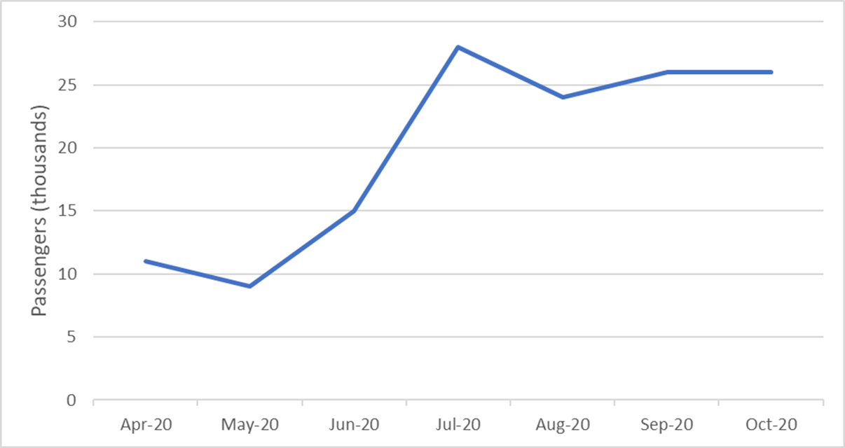 Figure 1. KLIA monthly ASEAN passenger traffic: Apr-2020 to Oct-2020