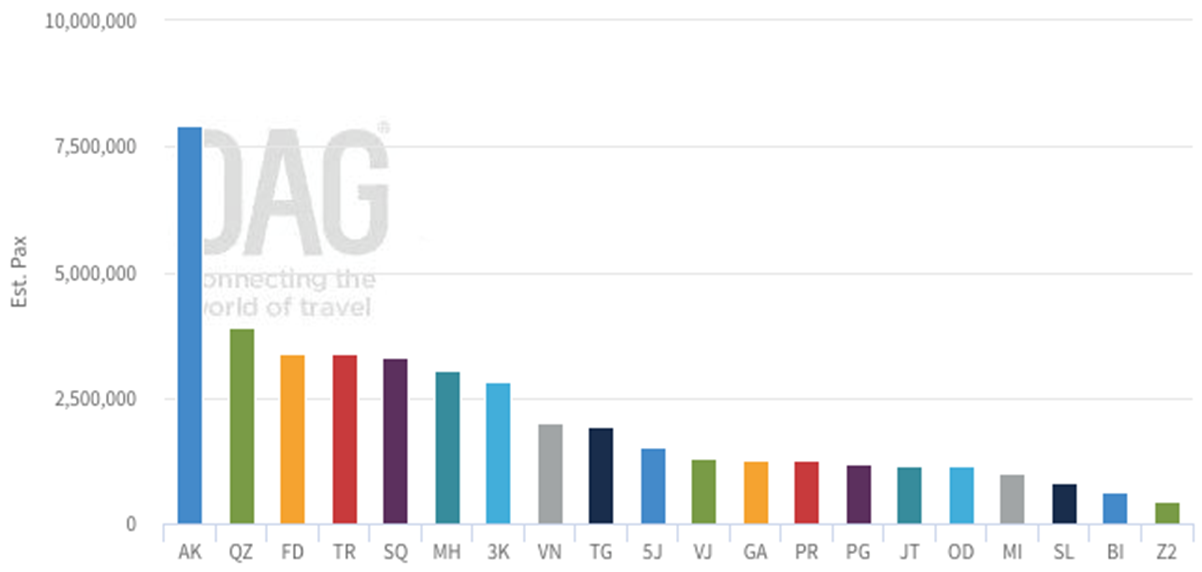 Figure 2. Top 20 airlines for international O&D passenger traffic within ASEAN: 2019