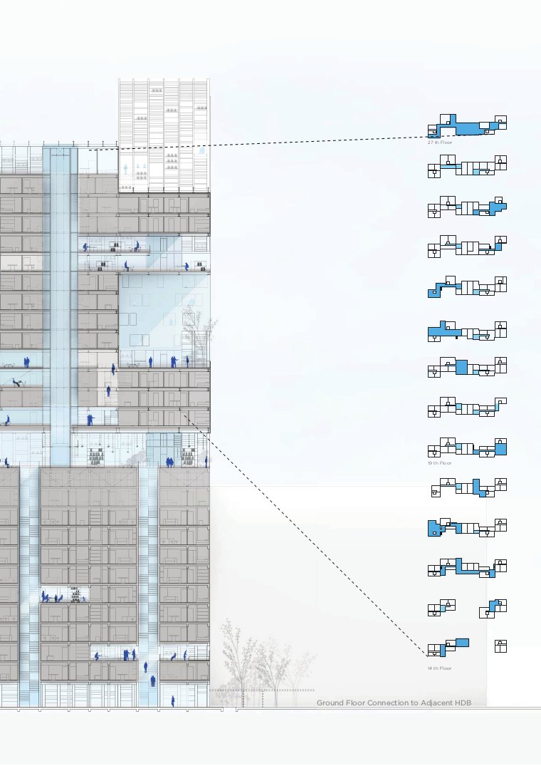 As the population in Singapore becomes more affluent, ‘the public housing projects has to move on from merely fulfilling basic housing needs’. The transformation of the city and the changing needs pressure the older public housing estate to face demolition and redevelopment. The purpose of the thesis is to explore the alternative attitude towards transformation that preserves the community. The idea is to create ability for the old HDB estates to absorb different changes and vibrancy without demolition and relocation of communities. This retains the social network, gives time for culture to grow while adding vitality to the urban context and most importantly allows flexibility in city planning.