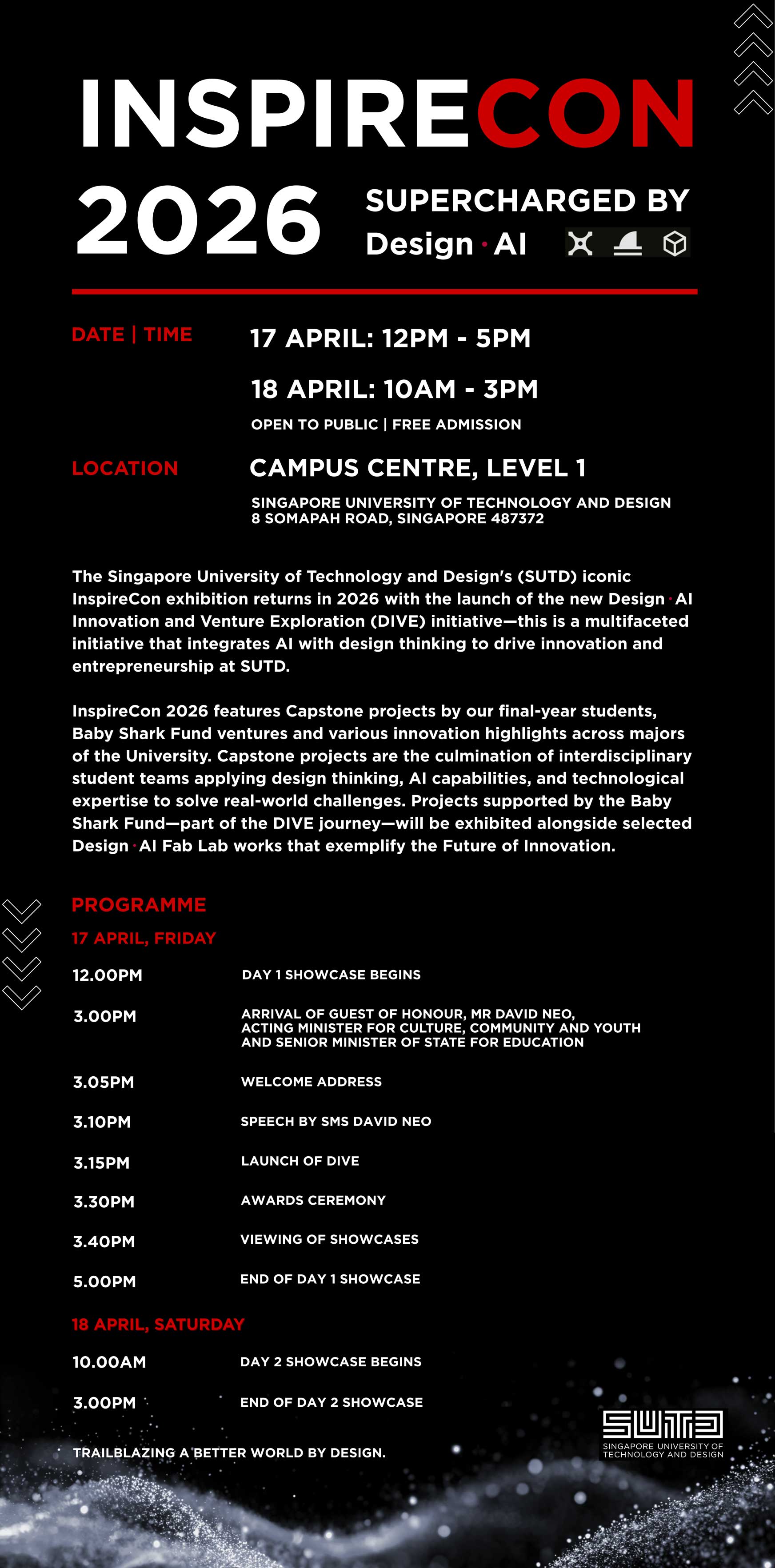 SUTD’s iconic InspireCon exhibition returns this year with the launch of our new Design·AI Innovation and Venture Exploration (DIVE) initiative.