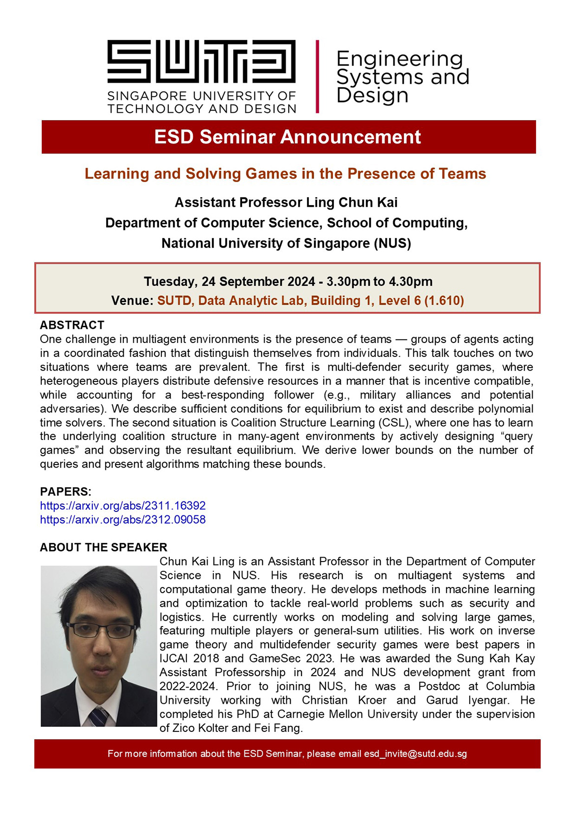 For more information about the ESD Seminar, please email esd_invite@sutd.edu.sg