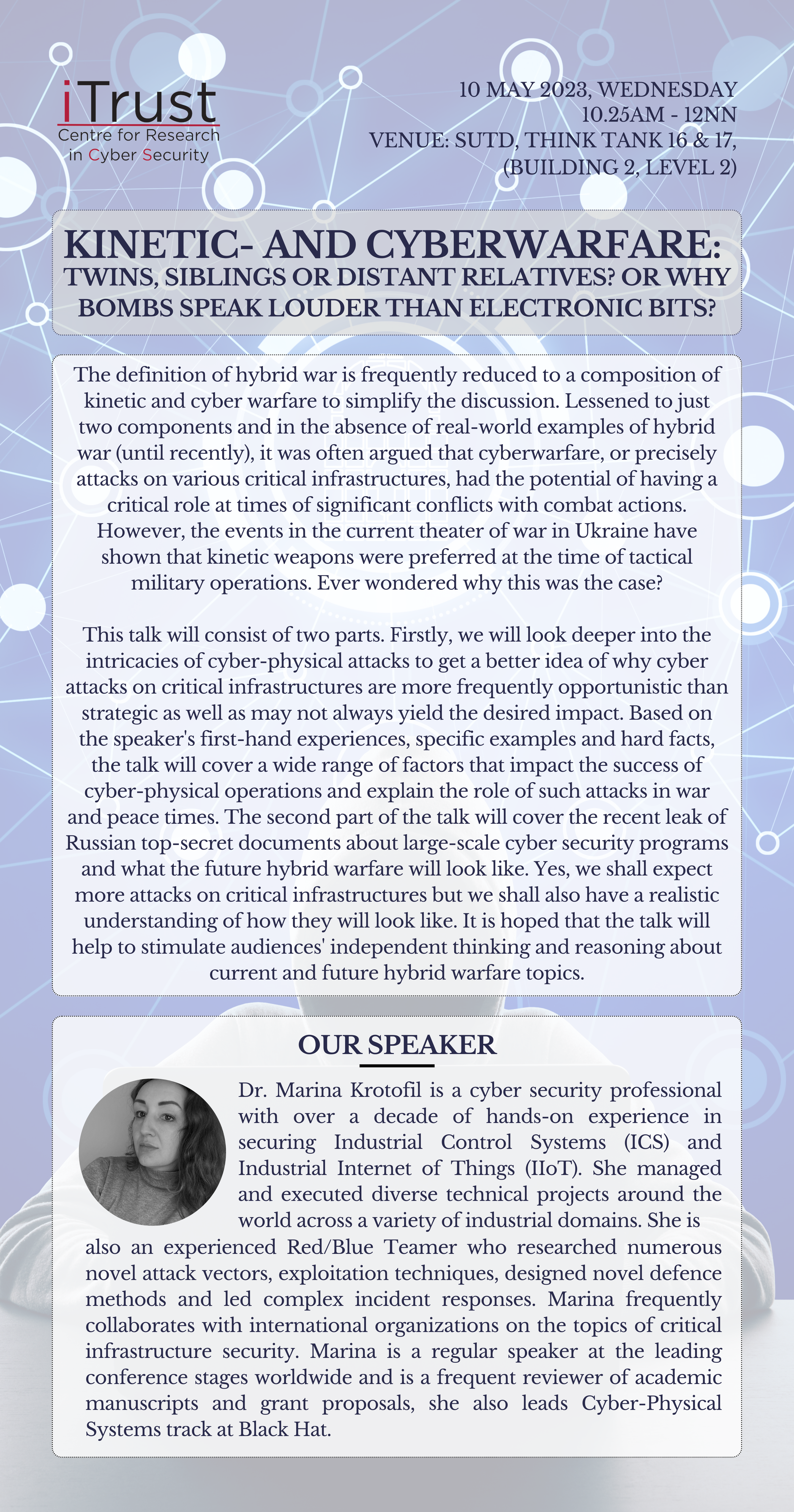 [Public Lecture] Kinetic- and Cyberwarfare: Twins, Siblings or Distant Relatives? or Why Bombs Speak Louder Than Electronic Bits.