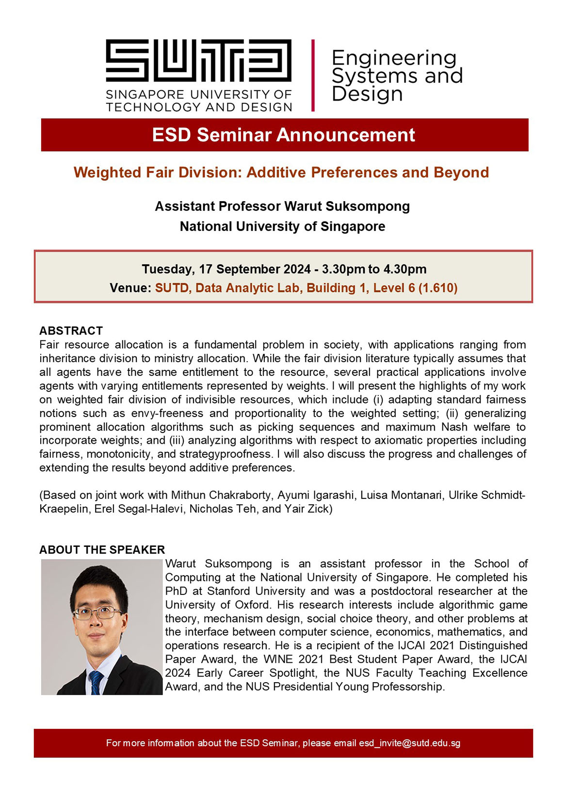 For more information about the ESD Seminar, please email esd_invite@sutd.edu.sg