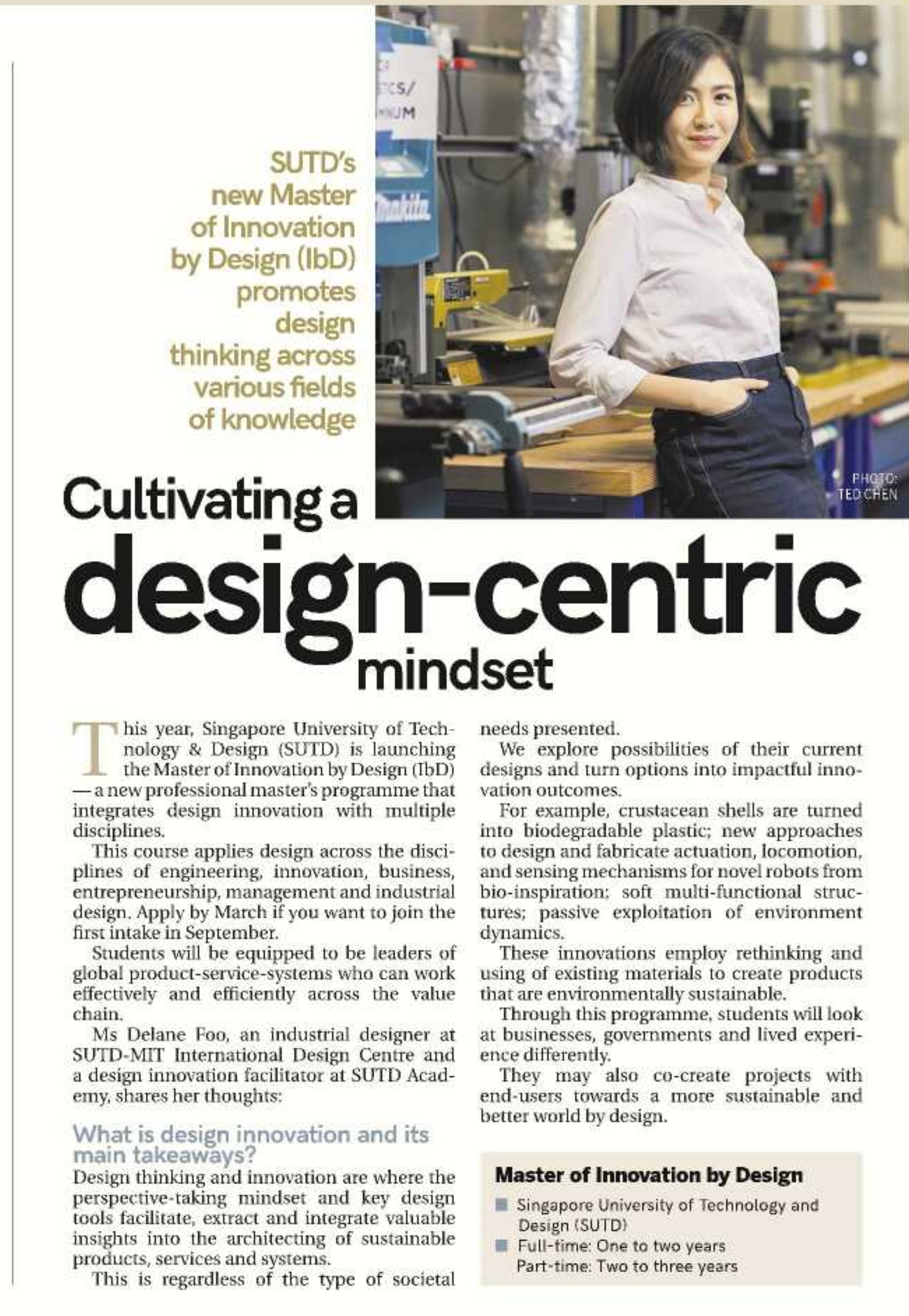 The Sunday Times – Post Graduate Studies I – Cultivating a design-centric mindset featuring Ms. Delane Foo