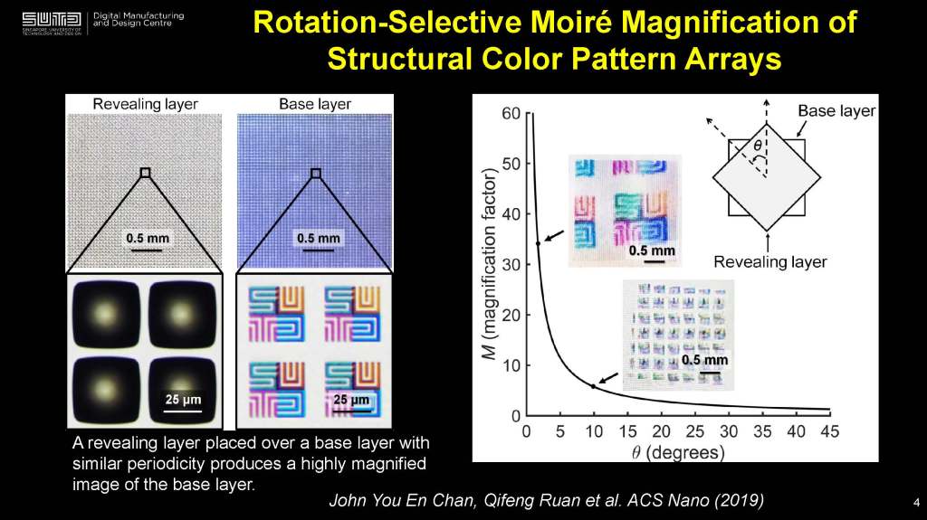J. Y. E. Chan, Q. Ruan, R. J. H. Ng, C.-W. Qiu, and J. K. W. Yang, “Rotation-Selective Moiré Magnification of Structural Color Pattern Arrays,” ACS Nano, vol. 13, no. 12, pp. 14138-14144, 2019/12/24 2019. https://doi.org/10.1021/acsnano.9b06772