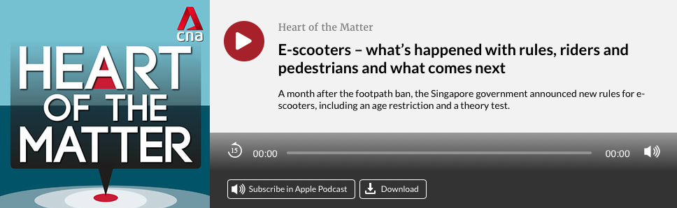 On 13 December, I was invited to join Channel News Asia on their podcast series ‘Heart of the Matter,’ hosted by Jaime Ho to discuss the new rules and policy for electric scooters together with Nominated Member of Parliament Walter Theseira from the Singapore University of Social Sciences, and Steven Lim from the Singapore Cycling Federation.
